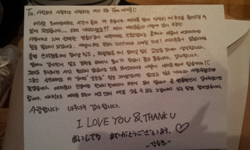 I’m standing in front of everyone now like this to show you that the 3 years that have passed waiting was not useless!!!To the “Kang Seungyoon” that’s become more mature, although you’ve always have, I ask for lots of your love and anticipation.