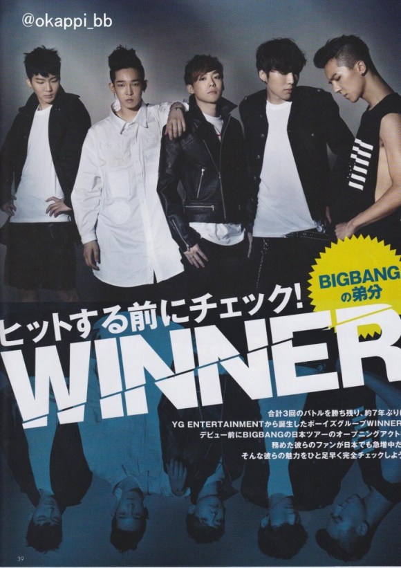 WINNER‘s aim is to be the next BIGBGANG but in a different way. They are expected from everyone to be the future of the next music generation. In five of them, Lee Seunghoon and Kang Seungyoon seems to be one who gets the most attention because they are picked from the TVcompetition. But, Korea’s undergroud rapper, Song Minho, maknae Nam Taehyunand Kim Jinwoo have their own attractions too. All five of them have different talents and good in different directions.