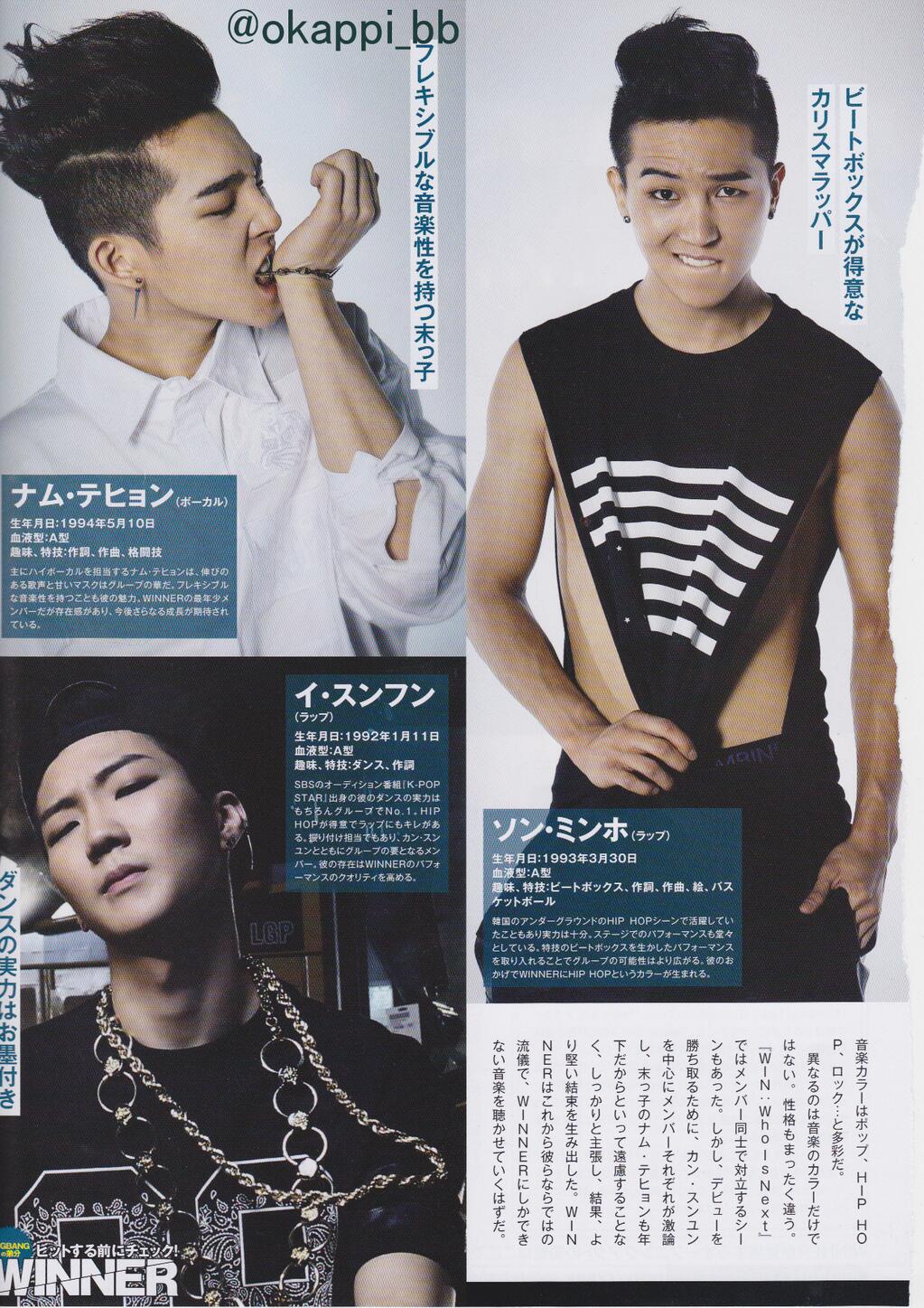 Hobbies: Beat-box, writing and composing songs , drawing , playing basketballHe was once a powerful underground hip hop rapper but now he could also performs very well on stage. Plus, he’s skillful in beatboxing which is very useful in WINNER’s performance. Because of him, hip hop is included in the team’s music.