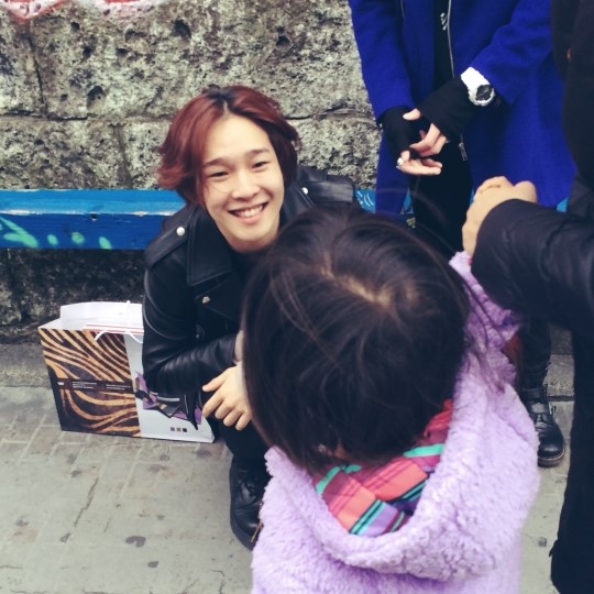 ![]() [Tae Hyun] Smiling to a kid he met in Japan. Him wanting to be a cute little kid just for this moment alone. |