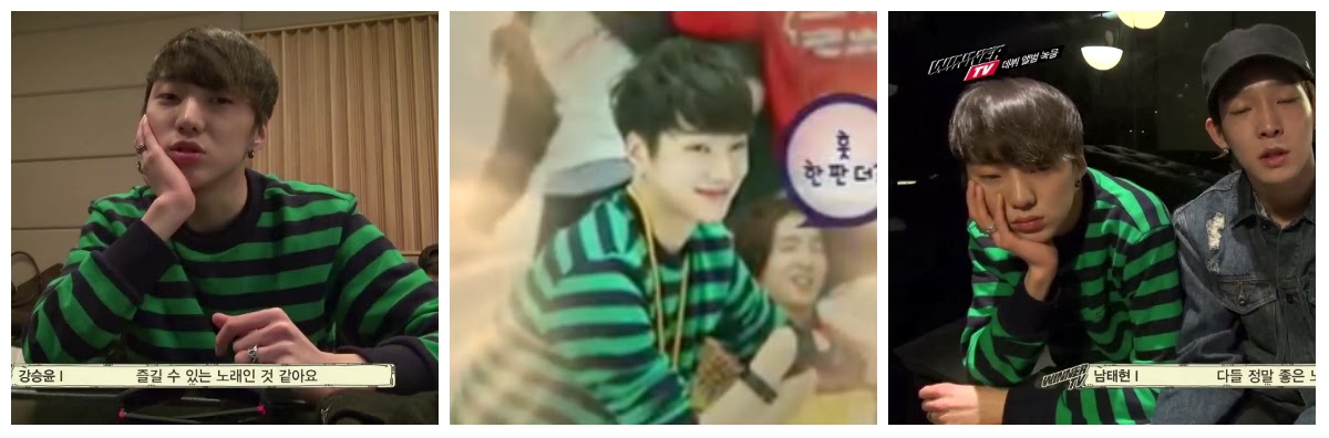 EPISODE 9: we have our leader, Kang Seungyoon with his NII sweater. He wore 유니)퍼드선염스트라이프쭈리맨투맨 NNUALQS1831 and it costs 49,900 Won.