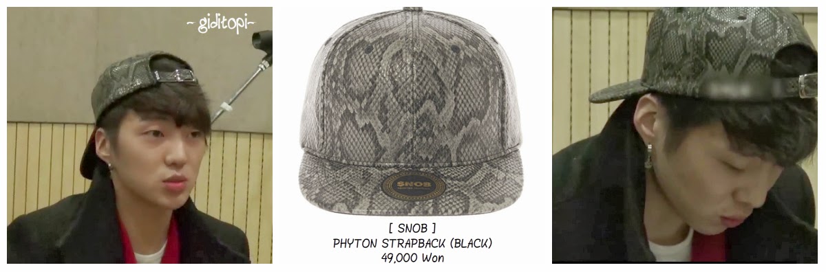 For his headwear, I found him wearing Phyton Strapback (Black) from SNOB and it costs 49,000 Won.Yup, it seems that in this episode Winner boys wearing too many Snob item kk, just like the last episode, they wore too many WESC item kkkkk.