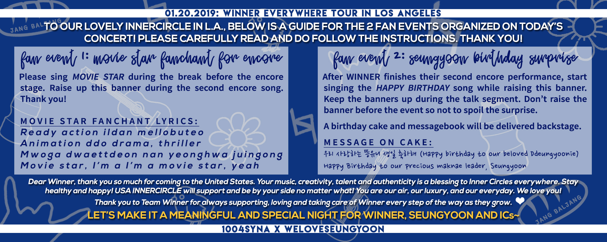 Upon learning that WINNER will be touring North America in time for Seungyoon’s birthday (specifically January 20th in LA / January 21st in Korea), the WLSY admins, along with 1004SYNA, couldn’t contain their excitement in planning for this special fan project!