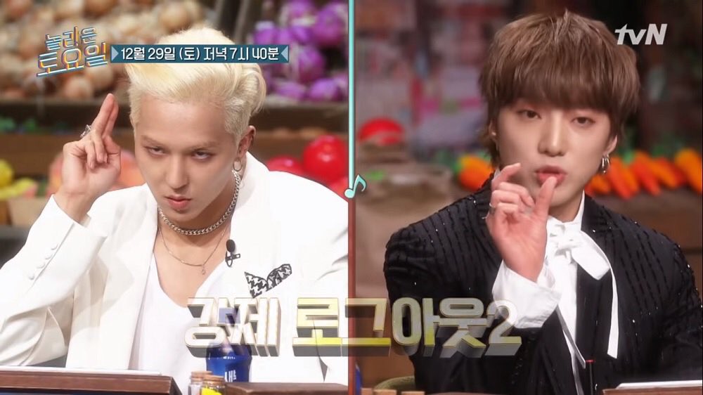 Lots of cute bickering and teasing: when Mino took a long time to respond to a question, SHINee’s Key joked, “Mino is buffering.” LOL! While they praised Seungyoon for his logical thinking and impressive listening skills, “He really is the leader!” Mino cutely turns the tables back on them by jokingly asking, “Are they always this catty on the show?”