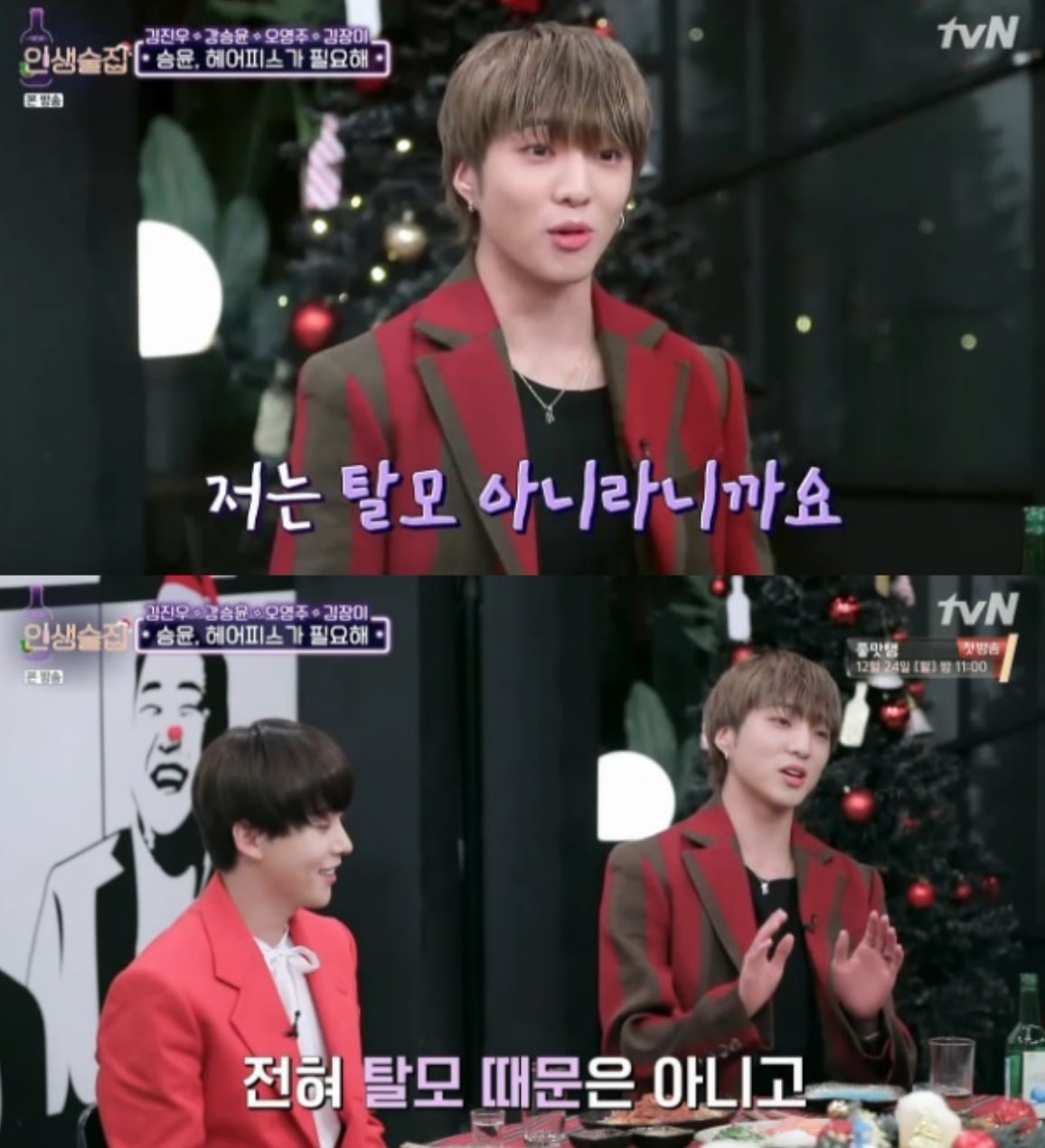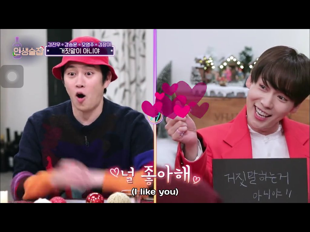 Kang Seungyoon and Kim Jinwoo appeared on the Episode-102 of tvN’s Life Bar, broadcast on December 20, 2018. A really fun conversation over drinks in the evening along with the show hosts Kim Heechul, Shin Dongyup and Kim Junhyun and fellow guests, it was a galore of Team Kills! Jinu revealed that Seungyoon wears a hair piece because he doesn’t have a lot of hair and a wide forehead! Hahaha! To which a (mock) enraged Seungyoon explained & outed Jinwoo in turn: