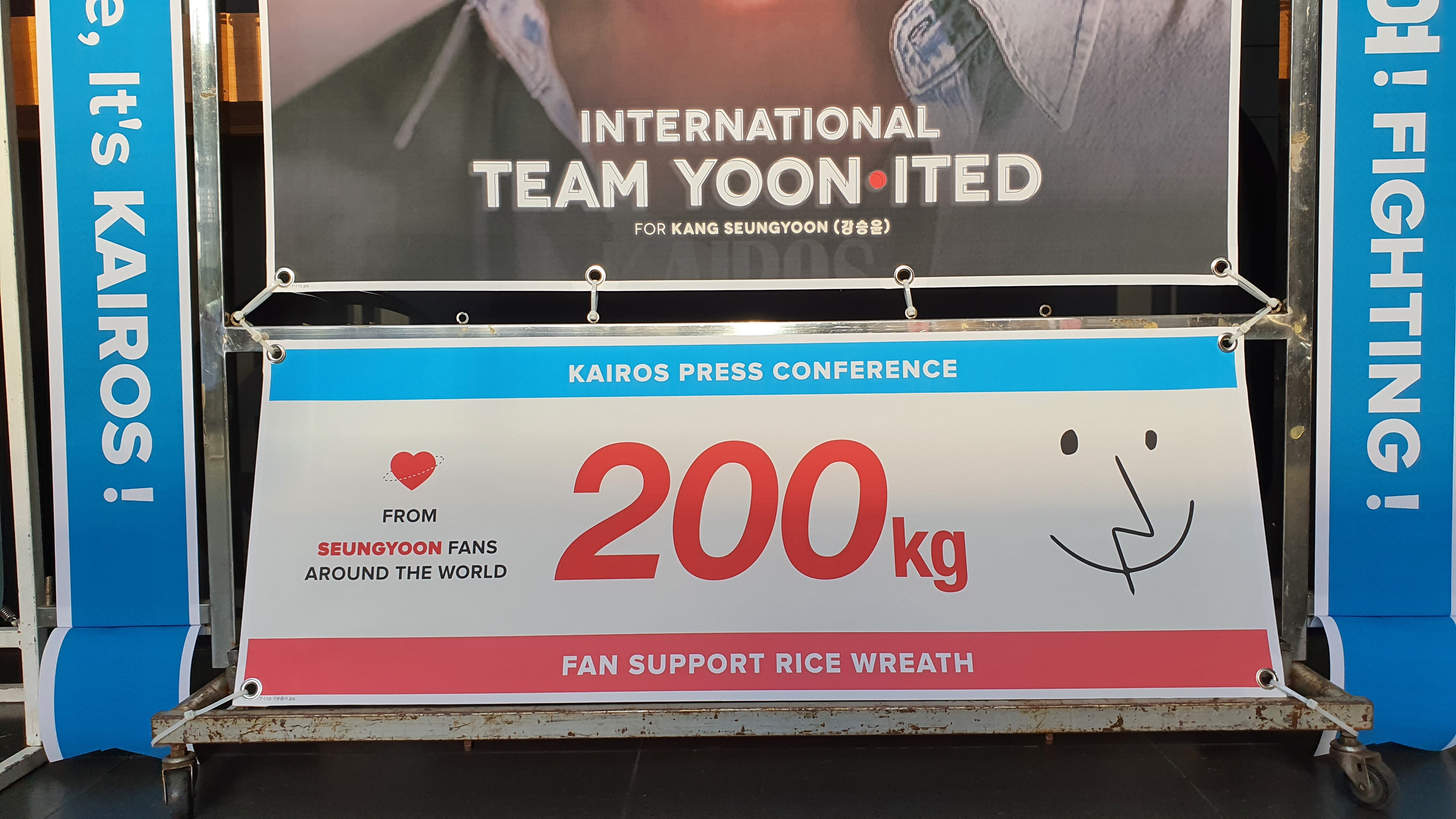 Rice wreaths, stacks of rice bags decorated with ribbons and photos/banners, serve as congratulatory gifts from fans to their favourite artists. The rice will later be donated to a charity under Kang Seungyoon’s name. This fundraiser isn’t just to show support to our Actor Kang but also a meaning deed ultimately to help the needy and less fortunate.