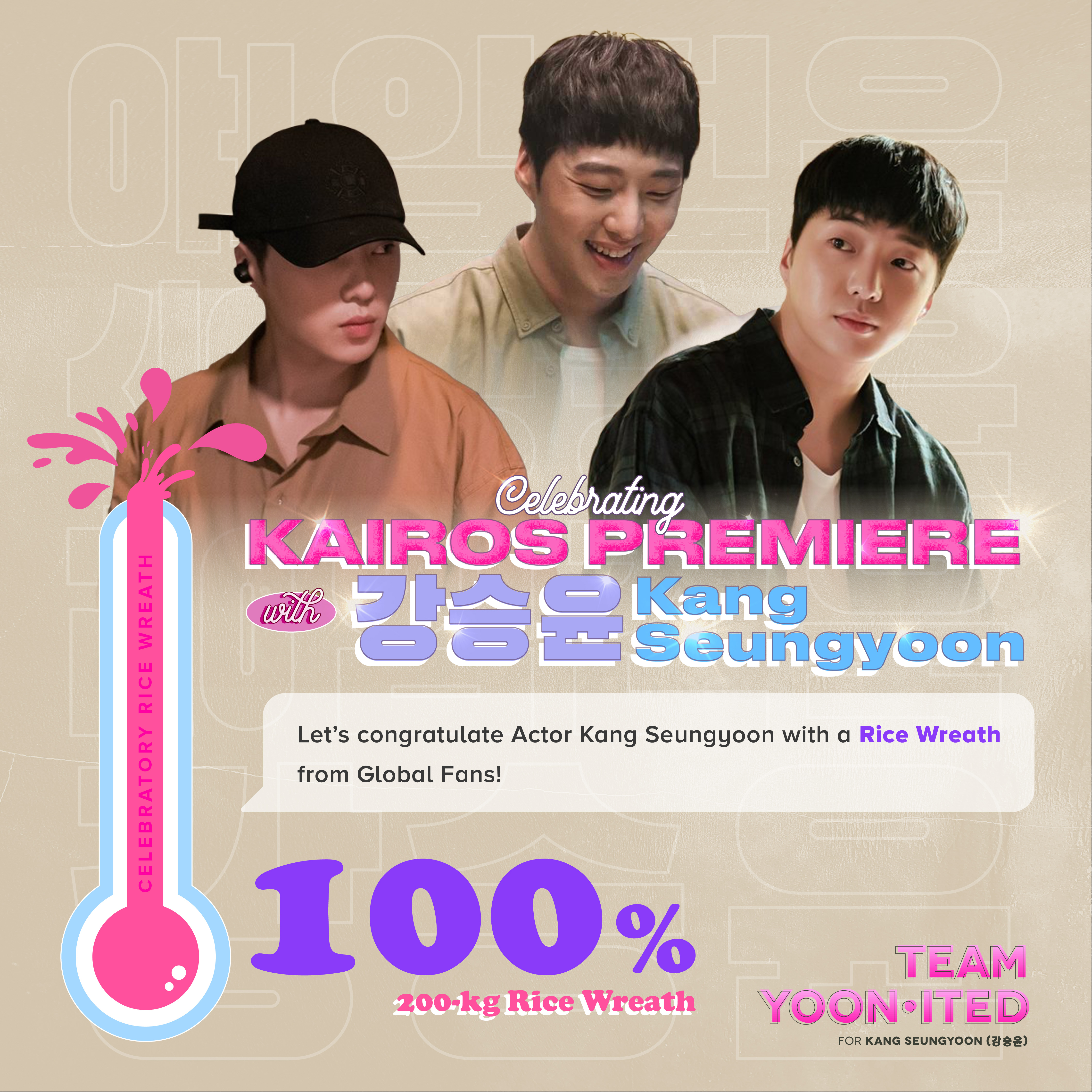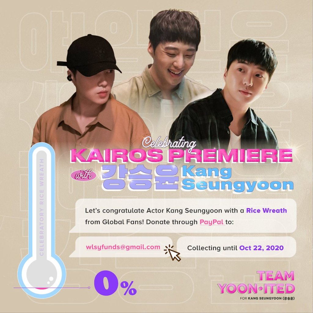 Such amazing overwhelming response & love for Actor KANG SEUNGYOON! We have received funds far exceeding the initial goal & will now be donating 2x the planned amount of rice! 200 KG rice instead of 100 KG rice🎊🎉