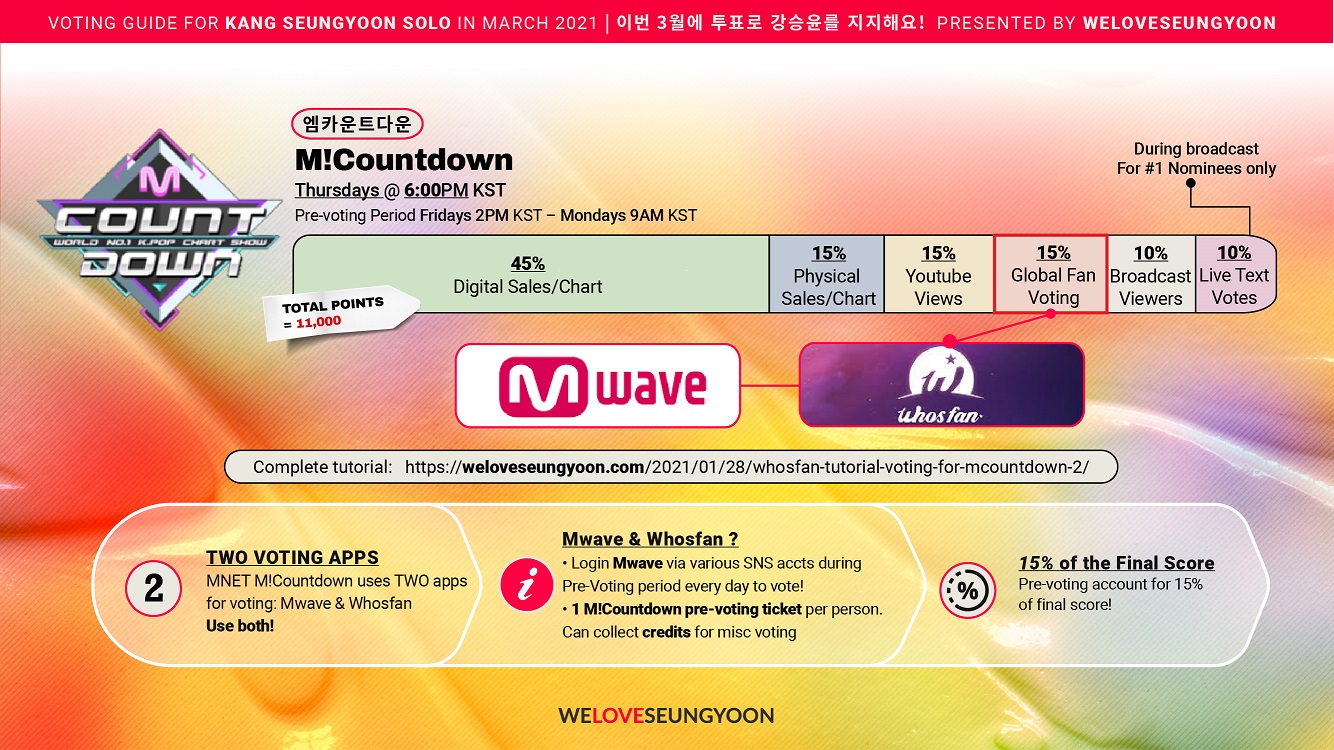 The Music show MNET M!Countdown uses TWO apps for Pre-Voting, which are also used for some year-end awards & miscellaneous things like ads on birthdays. Both are equally important & account for 15% of final score from Global Voting !