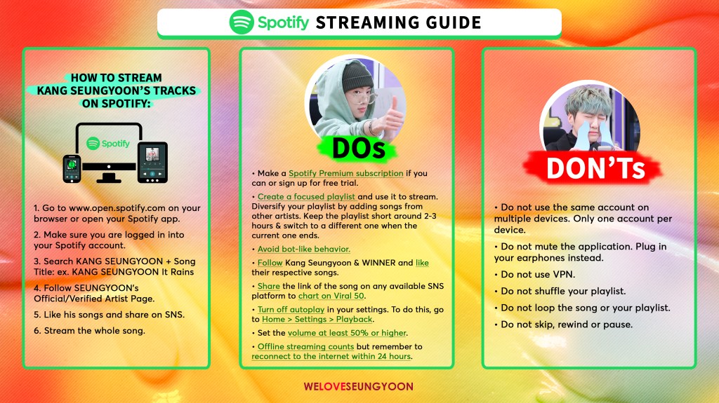 Spotify streaming is included in Billboard charts + it’s playlist of viral songs is a great way to introduce new people to music from Seungyoon!
