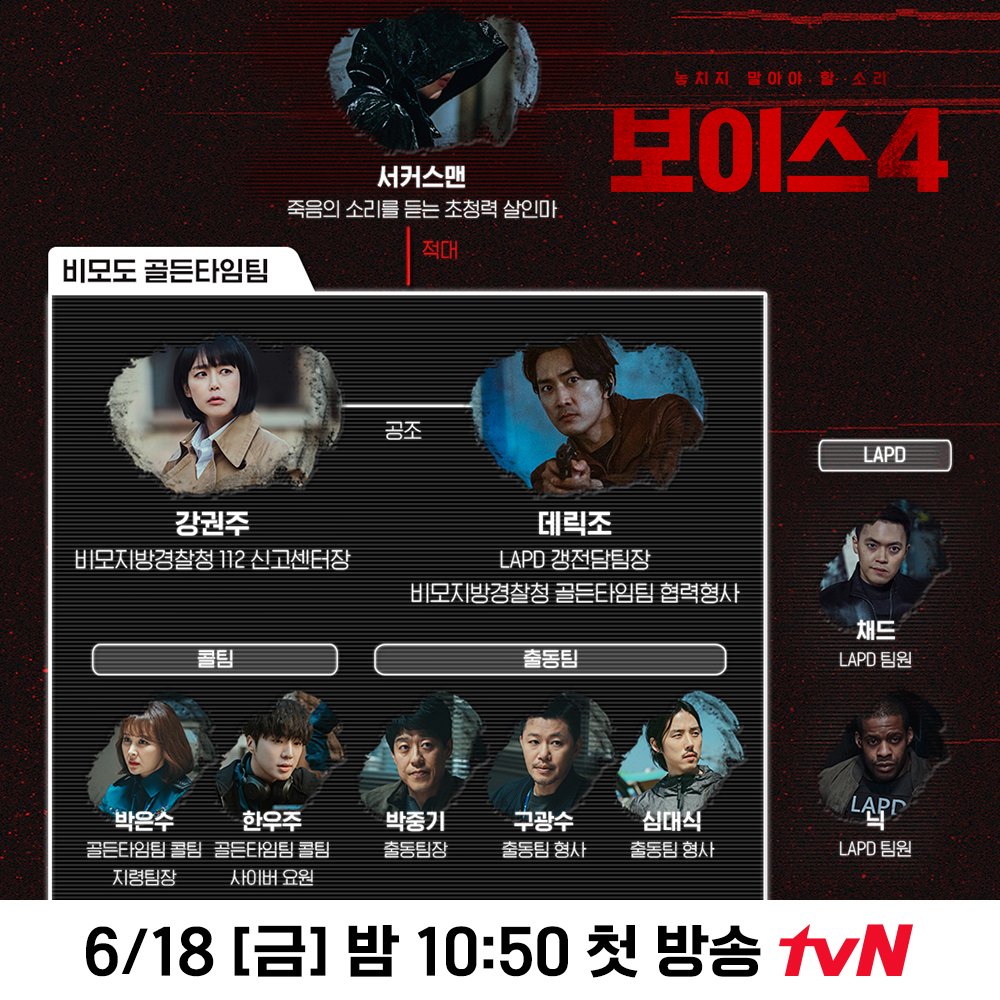 <Voice 4> is the fourth season of popularly known OCN original crime-thriller drama series, “Voice”! It will have 14 episodes which airs every Fridays & Saturdays at 10:50PM KST starting on June 18th! Unlike the previous seasons, the new installment will air for the first time on tvN! OCN & tvN are both under CJ ENM.