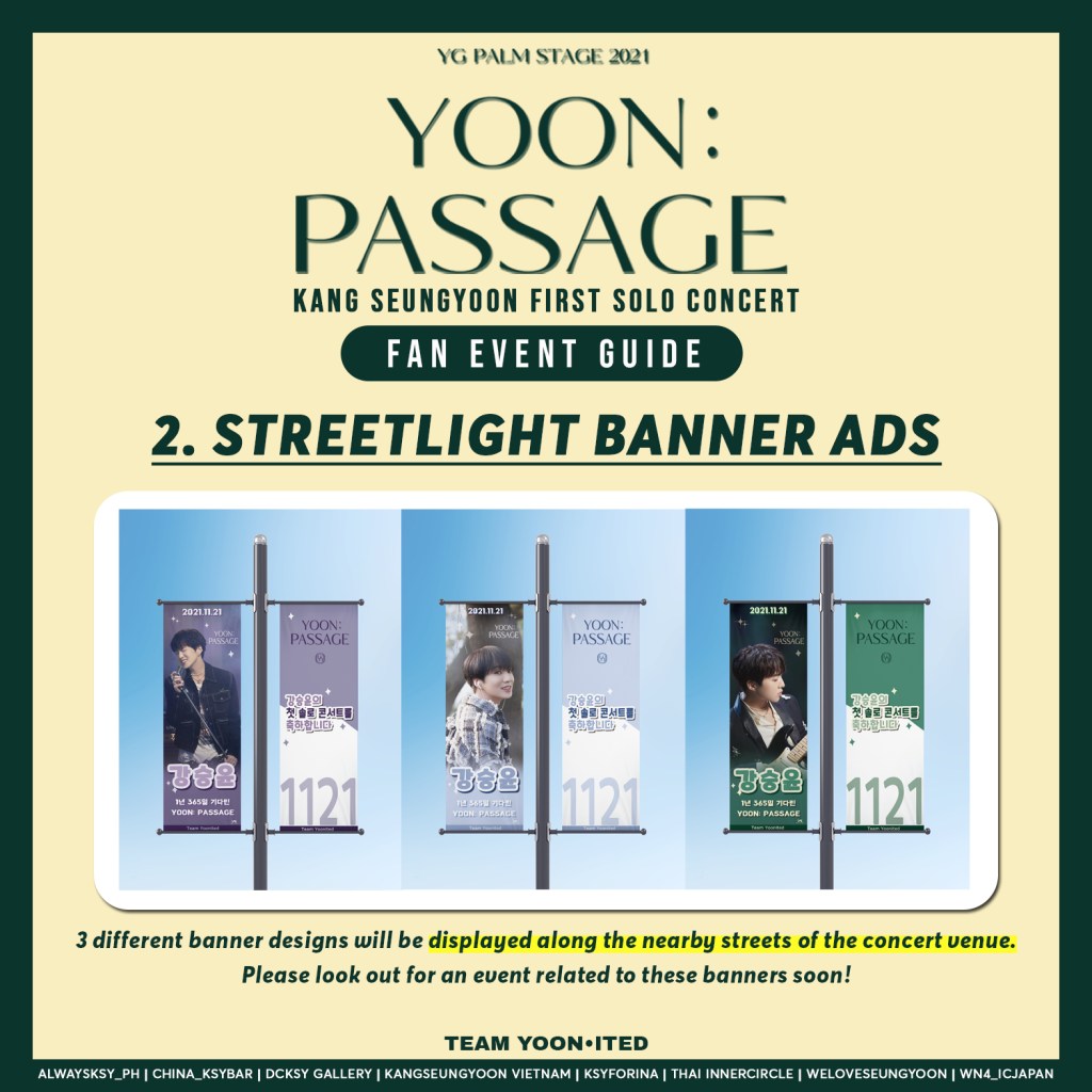 The regional KSY fanbases have come together under TEAM YOONITED for a beautiful event, to make Kang Seungyoon ‘s 1st Solo Concert, YOON: PASSAGE held on Nov 21, 2021 extra special !!! The fan events for the day: