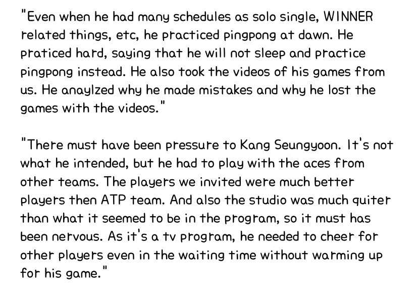 Kang Seung Yoon even said he would be willing to give up sleep to play and said he would not play for fun. He explained, “I’m serious about table tennis, I won’t play for fun. I can even invest my sleep time.”