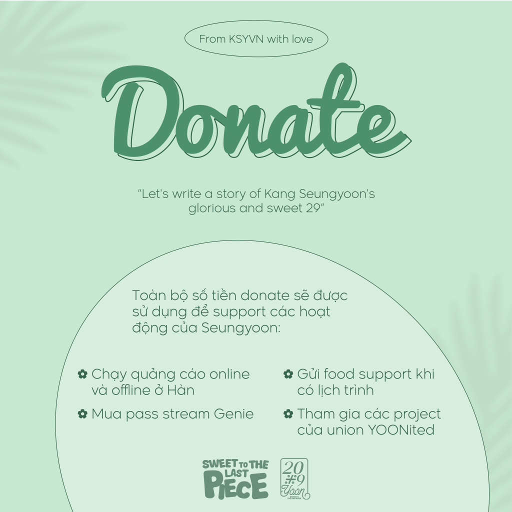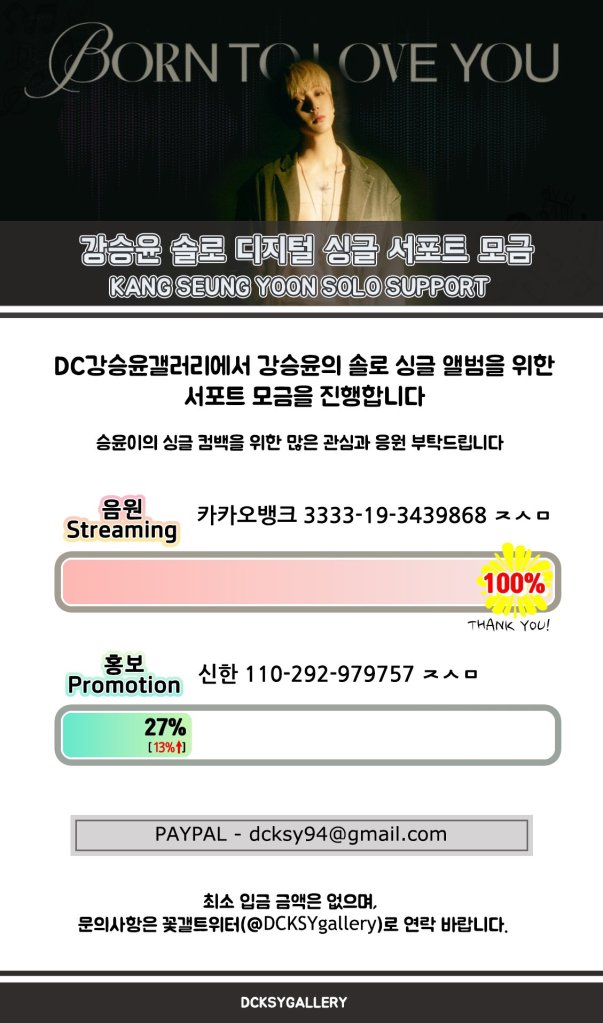 You can directly donate to country-wise fan bases or support through the links they provided respectively. For fans from countries without a dedicated fanbase, we would highly recommend donating directly to DCKSY Gallery efforts. They are the primary South Korean Kang Seungyoon fanbase.