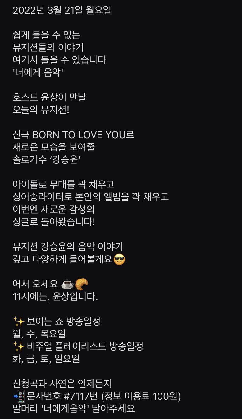 Seungyoon sat down and chatted with veteran musician and KOMS regular panelist on his Naver Now radio show ‘Music To You’ on Monday morning at 11AM KST on March 21st!