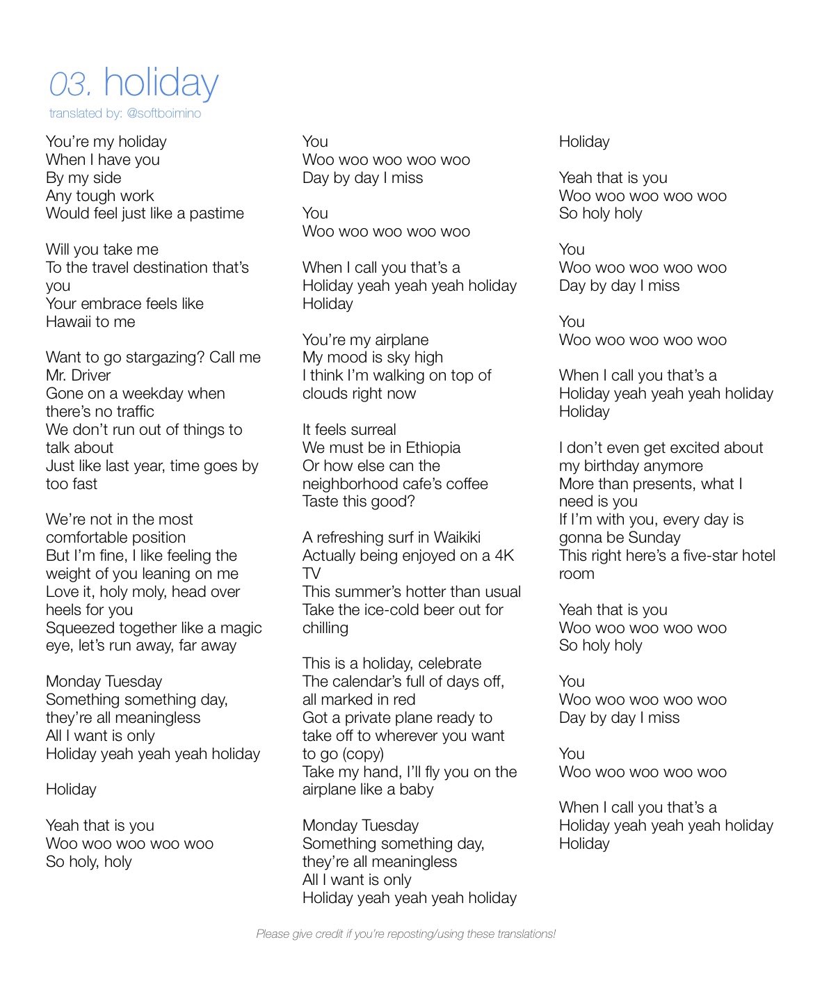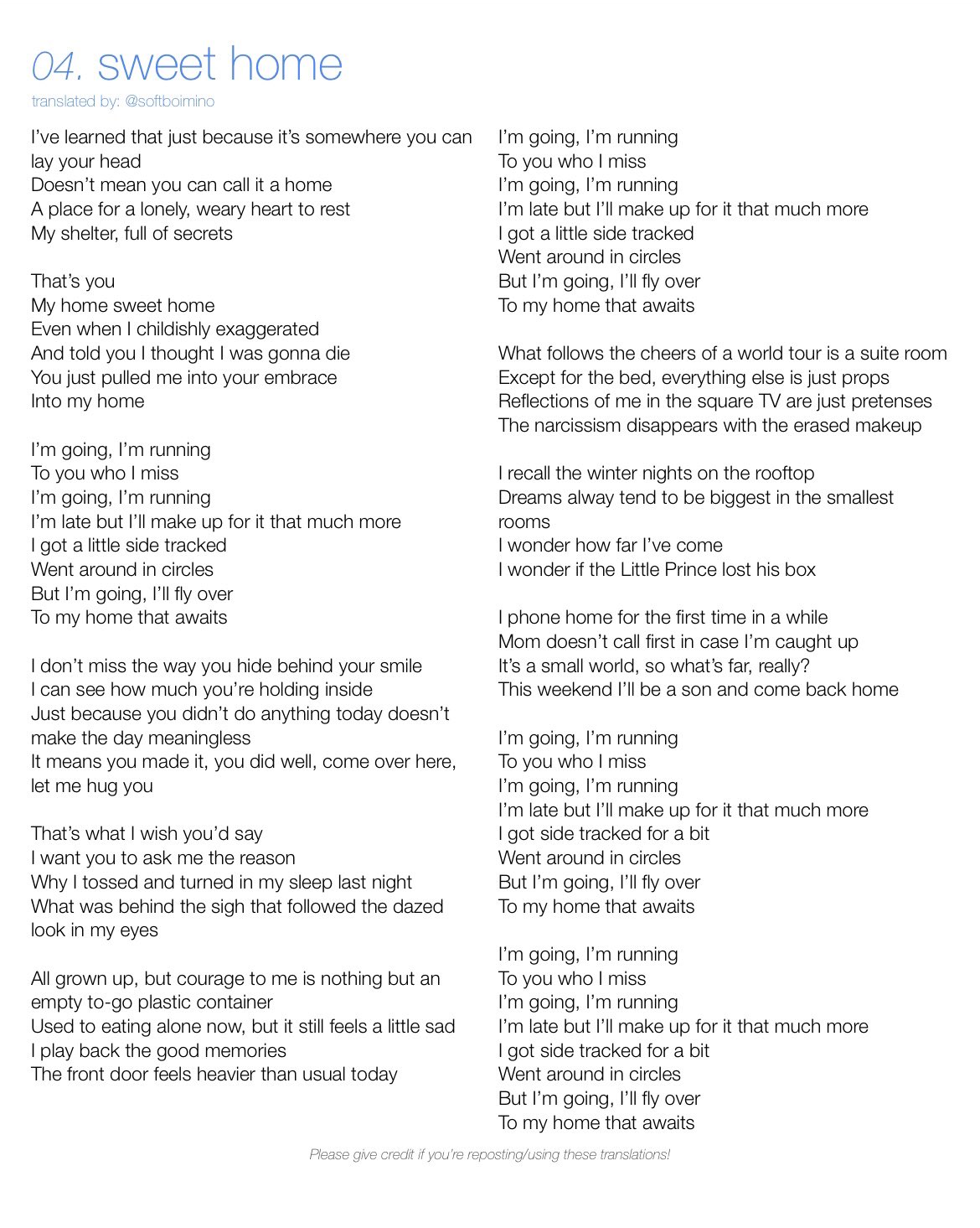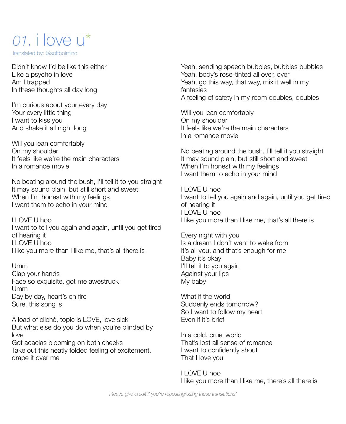 Lyrics Translations by softboimino