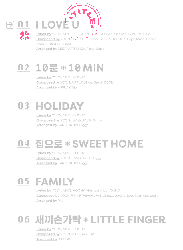 Their title-song ‘I LOVE U’ is a song that portrays the heart-pounding feeling of falling in love in an honest way, and is full of WINNER’s distinctive bright and energetic characteristics. In particular, YOON and SONG took part in process of creating lyrics and composition, adding even more completeness and sincerity to the album.