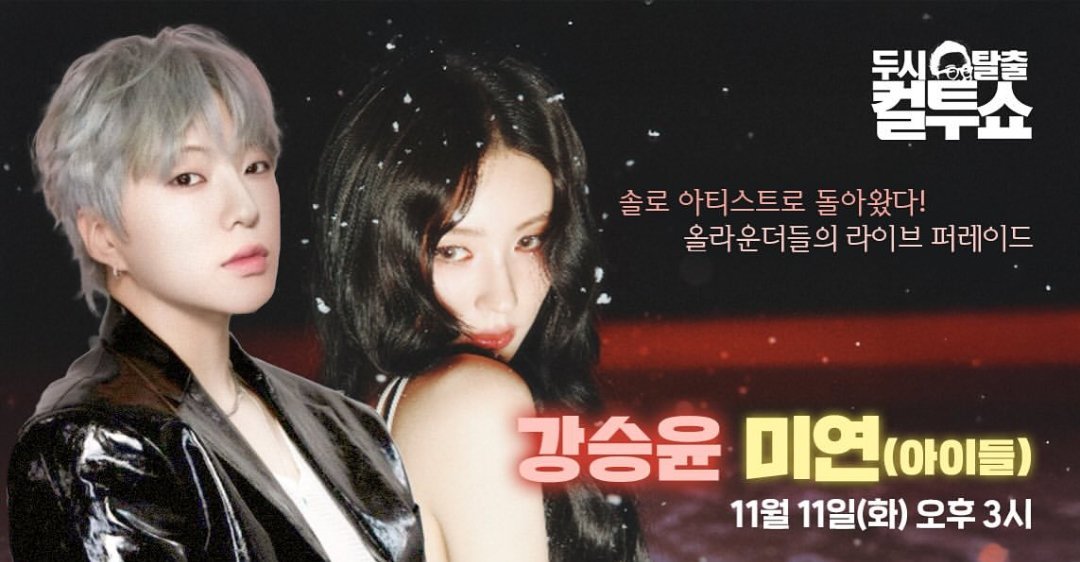 On the November 11, 2025 broadcast of SBS PowerFM’s Escape at 2PM Cultwo Show, special DJ Muzie together with Kim Taegyun hosted guests Kang Seungyoon of WINNER and Miyeon of (G)I-DLE, who both releasedsolo music at the same time.